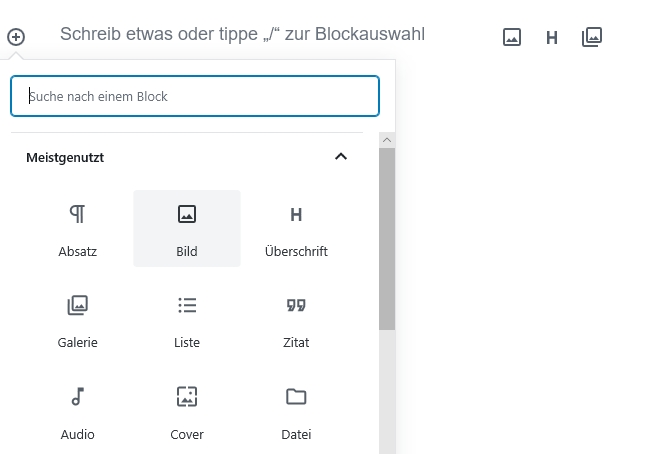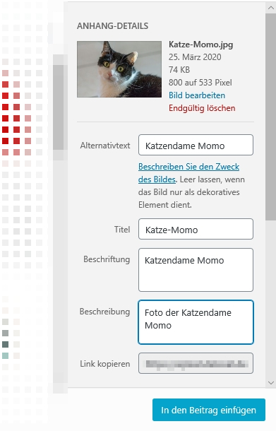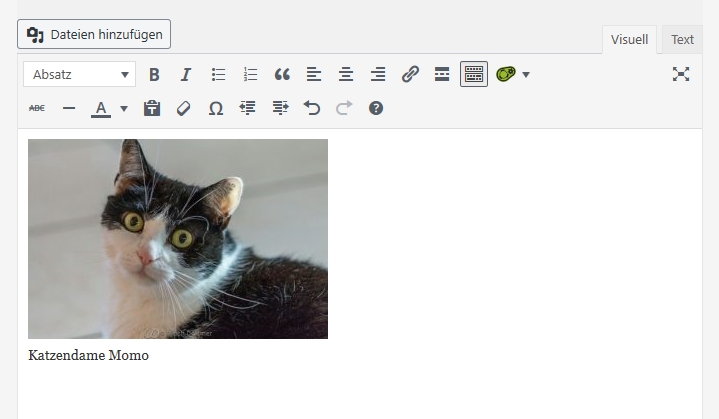 Es können nur Bilder/Fotos eingefügt werden, die auch in der Mediathek sind. Enweder sie sind schon in der Mediathek vorhanden oder müssen hochgeladen werden. Wird ein Foto in diesem Verarbeitungsschritt hochgeladen, wird es in der Mediathek automatisch dieser Seite/Beitrag zugeordnet. Das kann man dann in der Spalte “Hochgeladen zu” in der Mediathek sehen kann. Dadurch kann man später zuordnen, wo welche Bilder gebraucht werden.