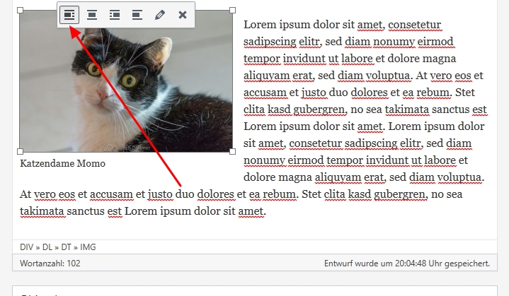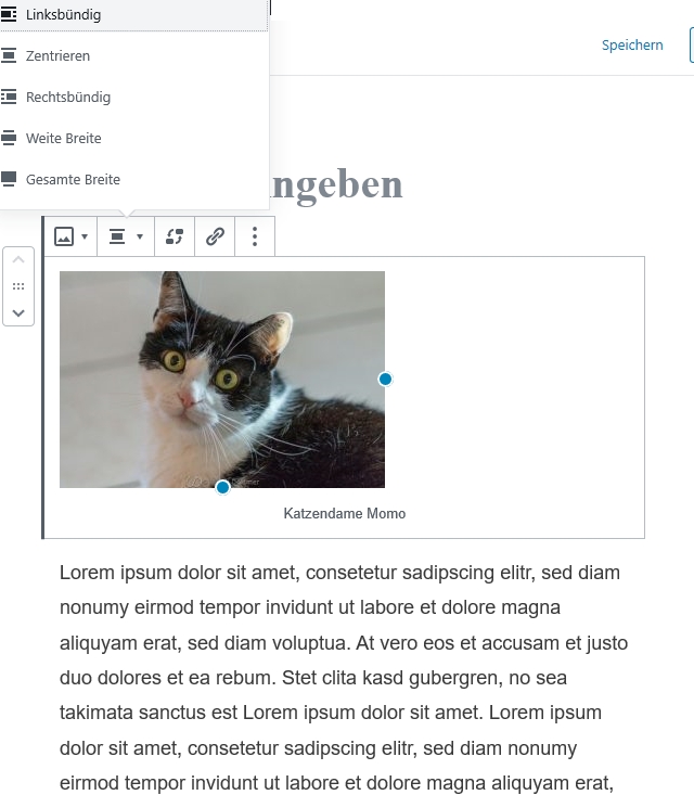 Der nächste Verarbeitungsschritt ist identisch für beide Editoren. Durch einen Klick auf das Bild erscheint ein Kontextmenü, durch das die Ausrichtung ausgewählt werden kann.