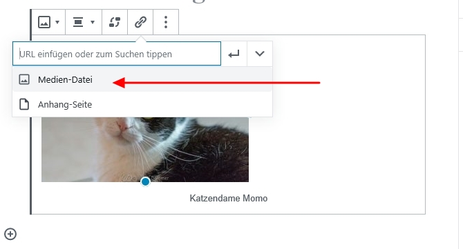 Dazu muss als Link die “Medien-Datei” gewählt werden.